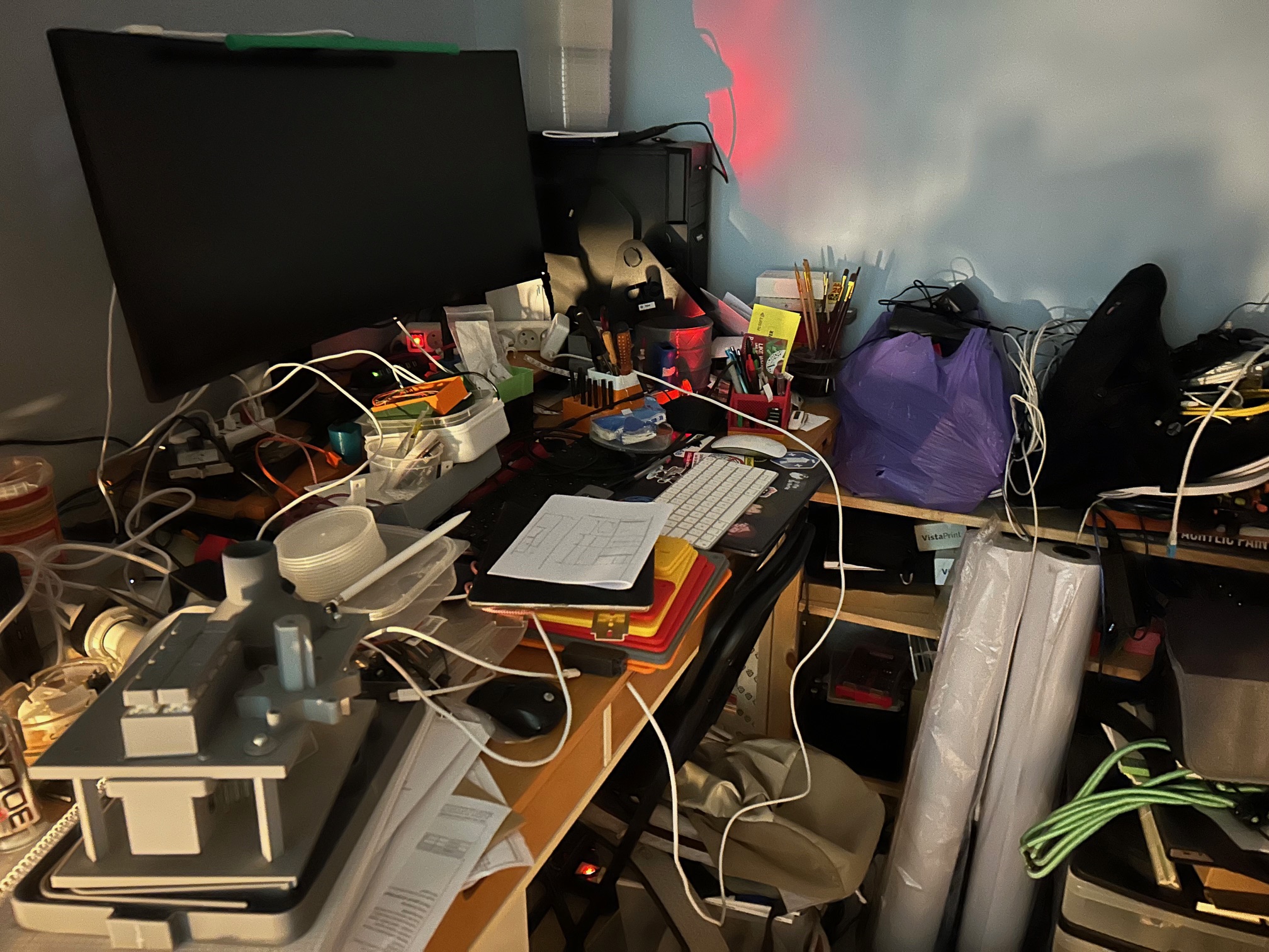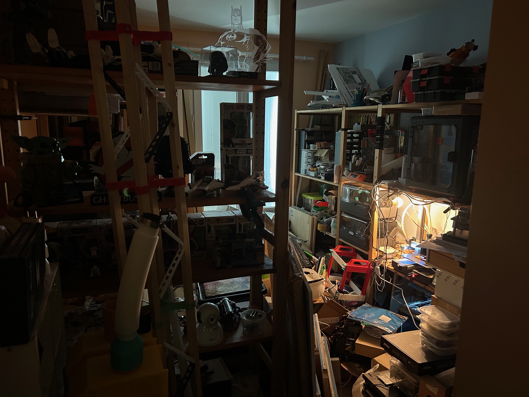 Soyons honnêtes : l'état actuel de mon coin informatique relève du chaos organisé... ou plutôt du chaos tout court ! Actuellement, il y a du désordre partout, et je n'ai littéralement pas 1m² de libre au sol. Mes projets s'empilent, les câbles s'emmêlent, et retrouver un outil devient une véritable expédition archéologique.